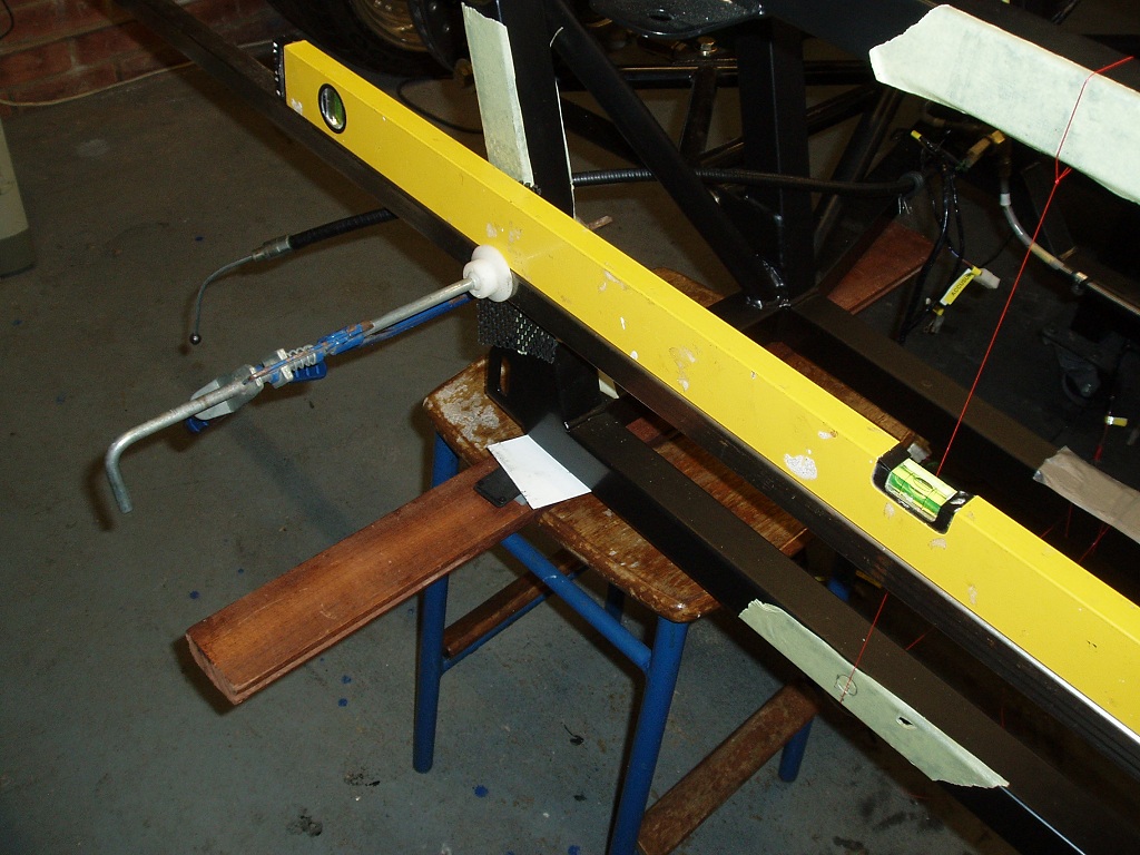 Setting the toe is easy enough once the string is set up. Camber was then set up using a 2 metre spirit level, a steel rule and some basic trigonometry.