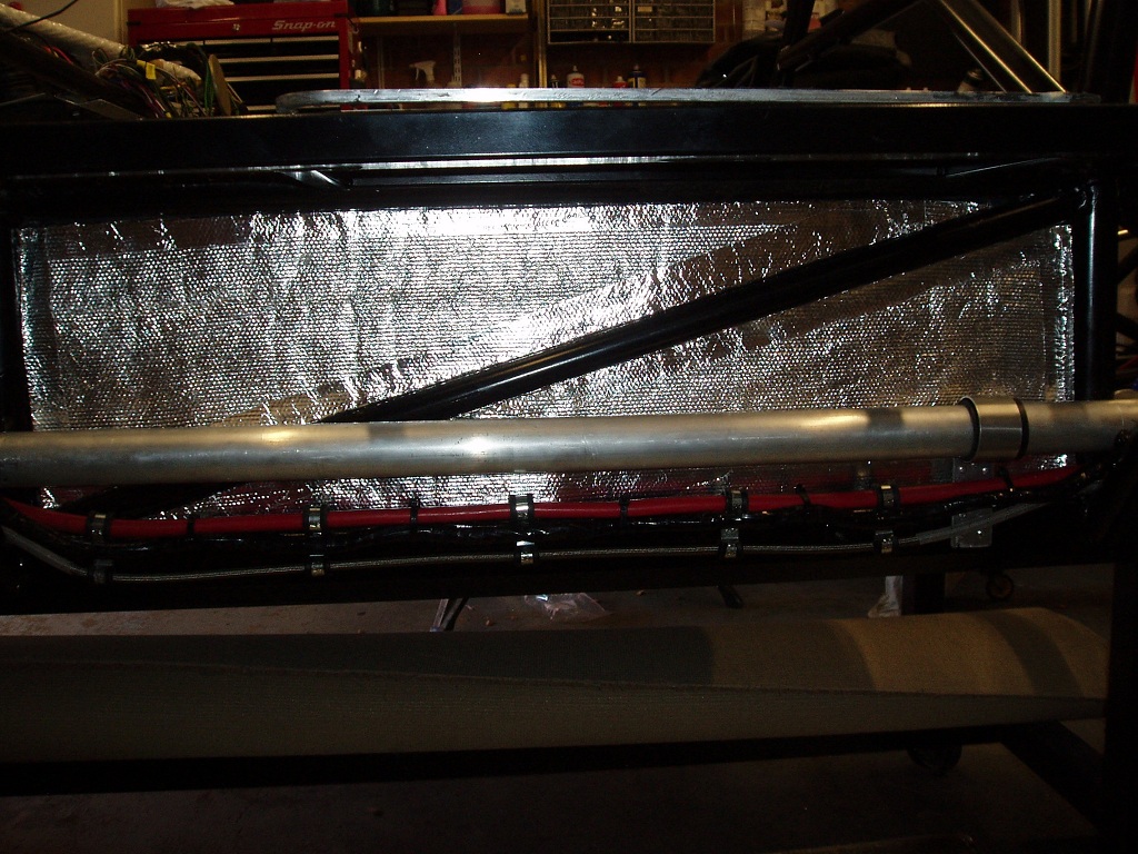 I finished the last few pieces of sound insulation on the chassis side panels. On top of this I cut and glued some of the heat reflective sheeting. To tidy up the edges I bound them with the metal tape.