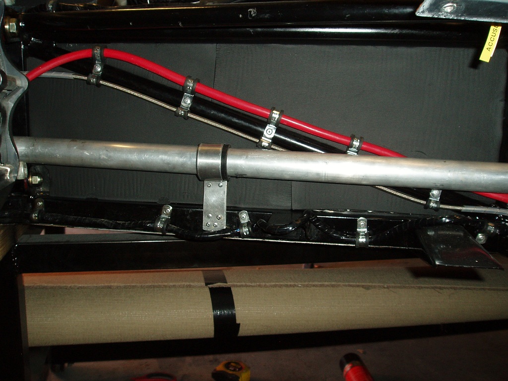 The water pipes are re-fitted down each side, to prevent them from potentially touching the chassis I apply some RTV sealant between the pipes and the chassis tubes. The radiator was then test fitted, I have to relocate the lower mounts leaving a slighty larger hole in the aluminium. I will seal this some how to prevent water ingress. For the holes underneath the car some people have fitted the radiator before fitting the bottom panel hiding the lower nut for the radiator mounts. I know as soon as your remove access to these there will be a time that you need access. Others have fitted a rubber bung in the holes, since mine are now slightly oval this will not work. I will make some aluminium plates and rivet them in place with sealant. That way they can be removed for access with out too much trouble.