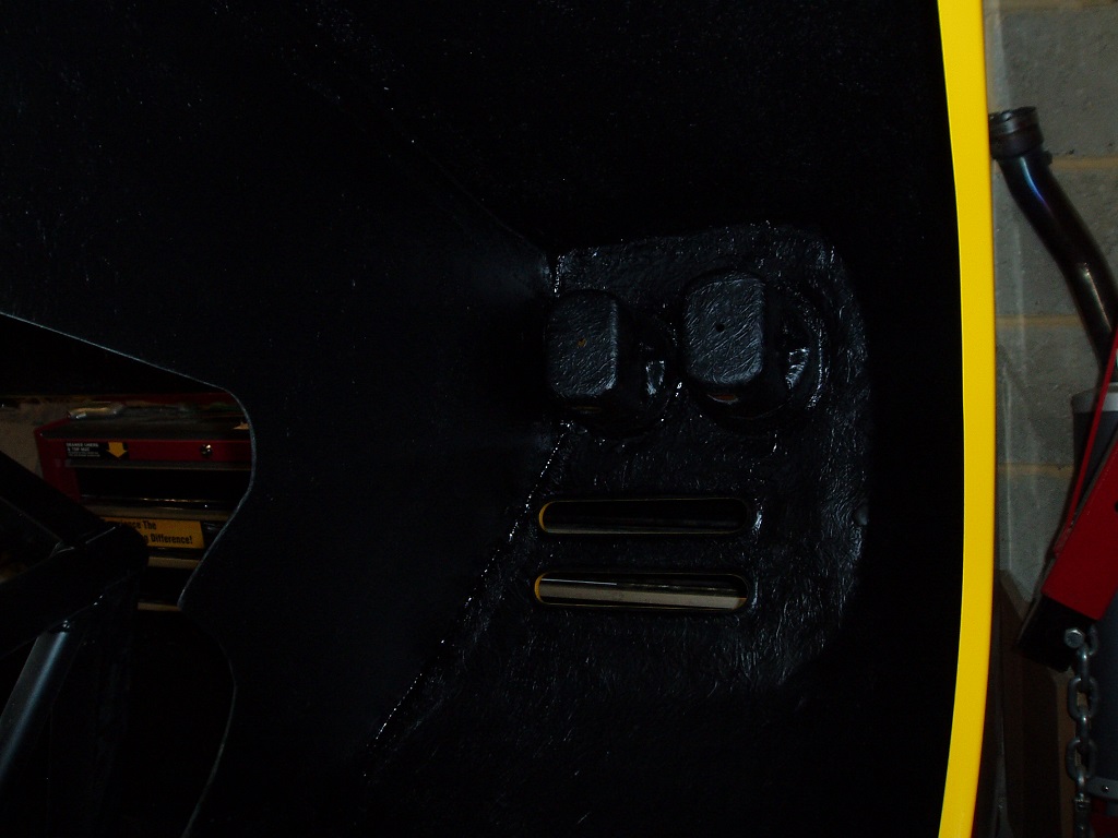 February 2015 All of the fibre glass modifications to the rear light pods have been completed. The LED lights will now fit in neatly.The wheel arch and back sections of the rear clip have also been painted with black stone chip paint.