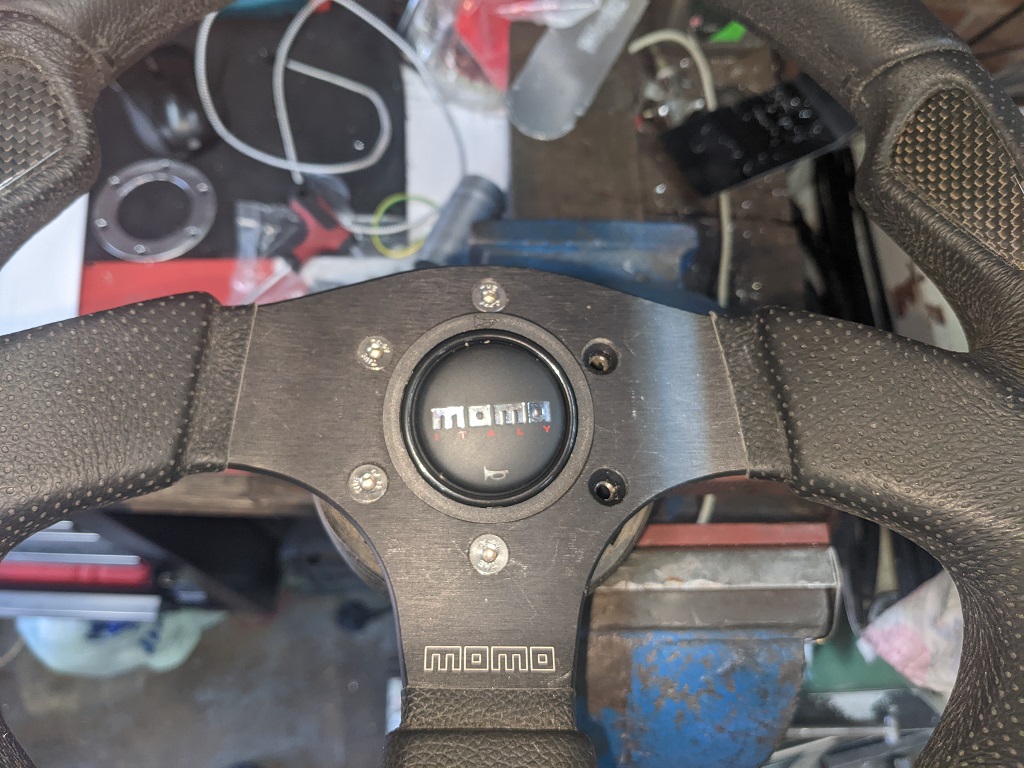 After some pondering I decide to make a retaining ring that will sit between the steering wheel and the horn push button assembly.
