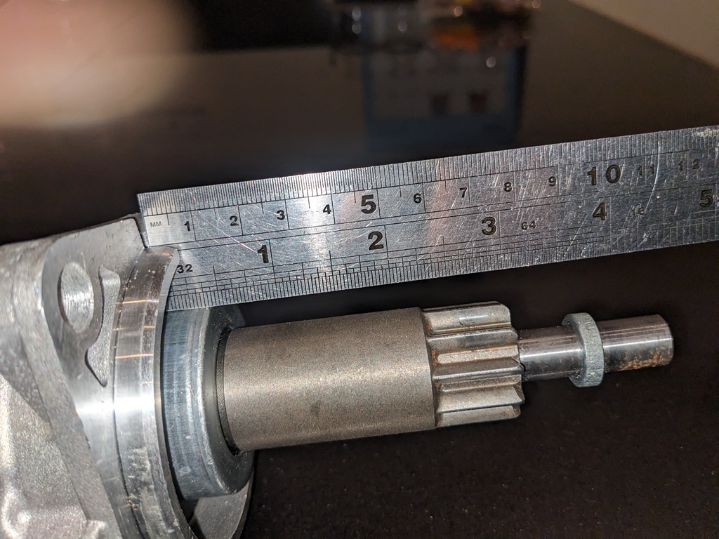 Looking around the internet I found a high torque starter motor from Heritage Parts Centre. This was not that cheap, coupled with the fact I also paid a fair bit for the one from the factory. I take some measurements and Heritage confirm that this should be fine for the G50/52. This starter has a much thicker shaft section and does not need or use the end bearing.