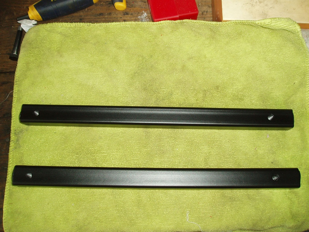 The blocks are drilled and tapped and then when located in the steel box section are tacked in with a couple of beads of weld. Once completed the risers are given a quick coat of black paint and fitted to the driver seat with some button head screws that screw down through the rails and into the blocks, care was taken to ensure that the length of the screws was such that they did not extend more than half way into the blocks - we need threads on the other side to screw the completed runners to the floor pan from underneath.