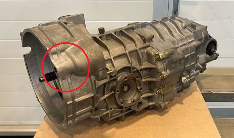 The starter motor supplied from Ultima appears to be the correct one for G50/52 transaxle. The end of the shaft should insert into bearing in the bell housing part of the transaxle. My transaxle appears to have had this part removed from the housing so instead of a small bearing, there is a hole about 50mm in diameter.