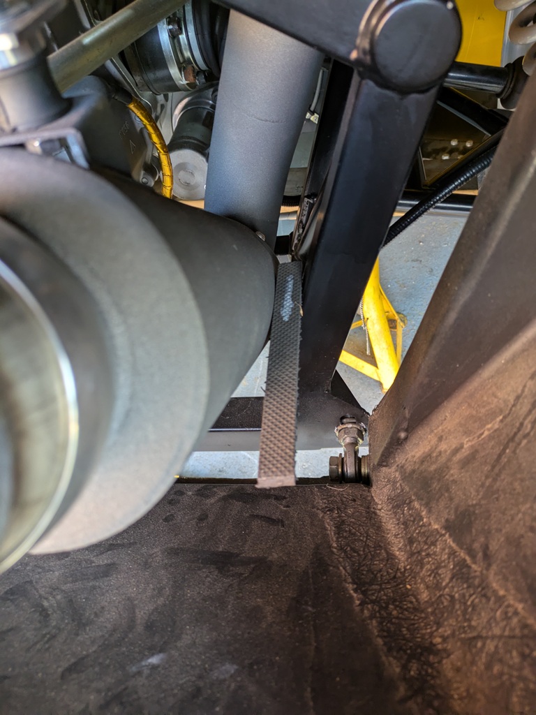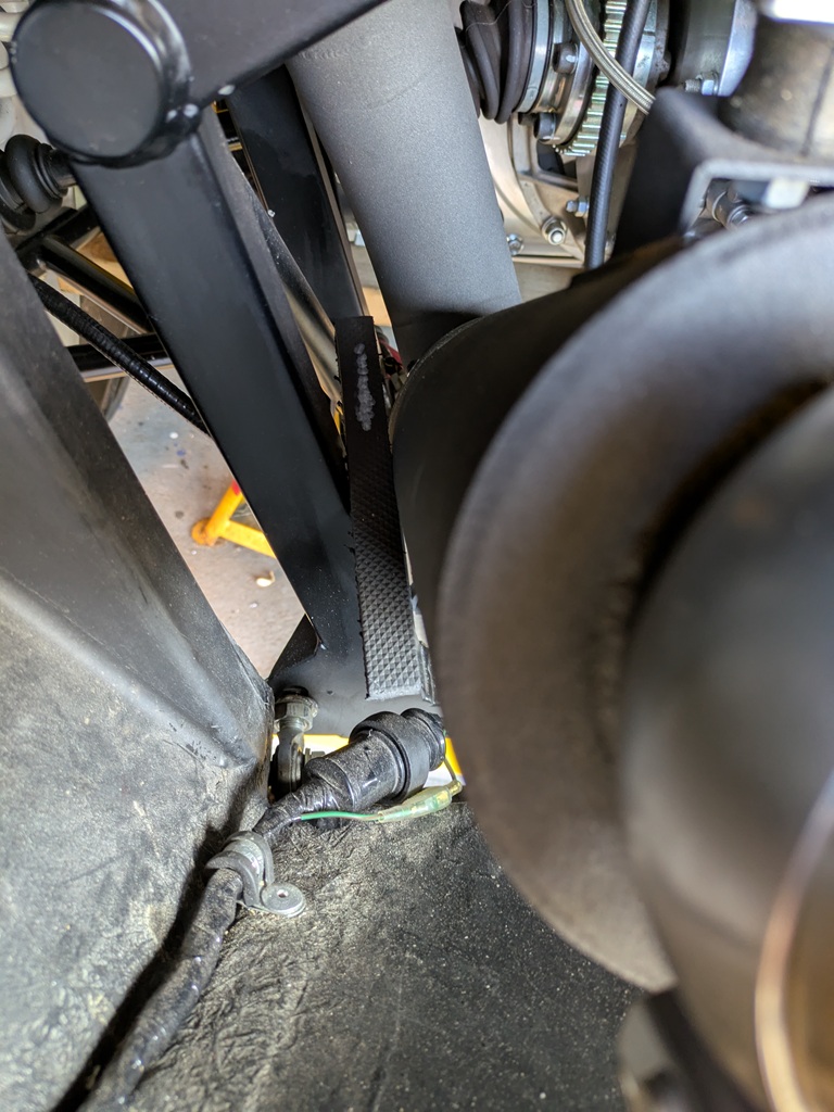 With the mufflers relocated to their original positions, I can use the tailpipe Sharpie marks to relocate the tailpipes in the same rotational plane. This just leaves he tailpipes to be aligned by moving up/down and side to side.